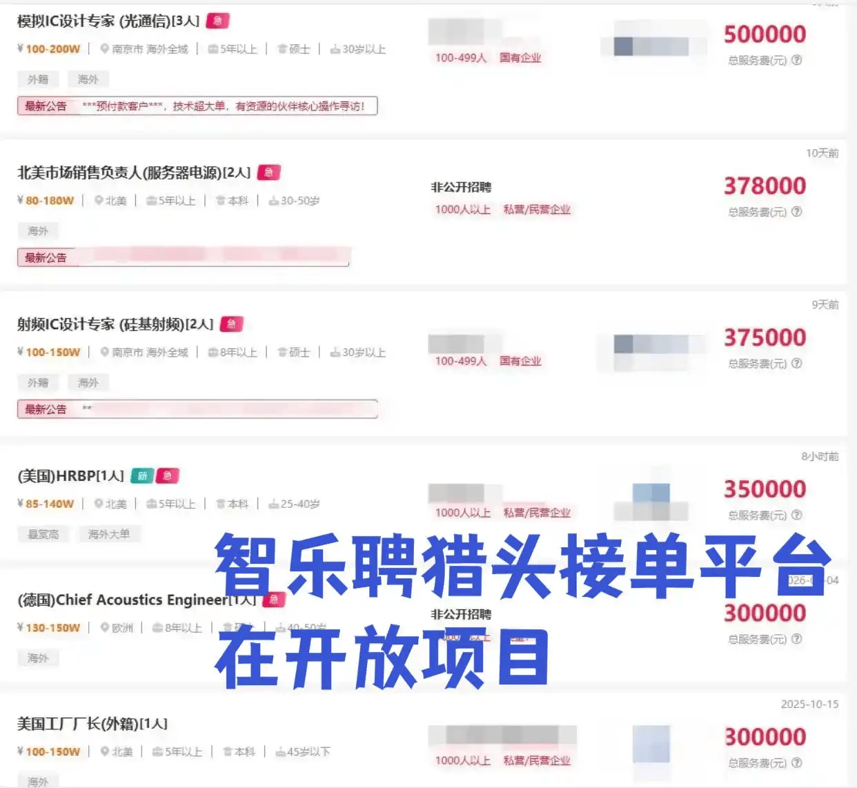 这些行业的企业正处在扩张期,对海外人才需求急、预算足,佣金也给得痛快。平台上还有很多海外华人和外派岗位,语言门槛低,不用担心外语不行。注册签约都有专属顾问带着,佣金直接打个人账户,周期透明。这平台运营十年了,入驻猎头超过十万,成单量可观,算是行业里比较稳的。